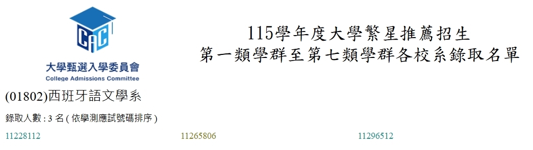 恭喜以上錄取同學~~歡迎加入西文系大家庭heart